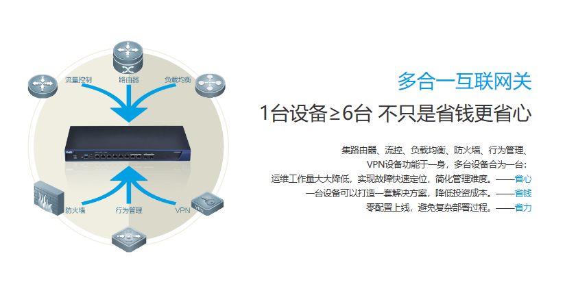 其它特性 | 支持多种身份认证 支持广告页面推送 支持多链路负载均衡 支持HTTP在线远程升级特征库、主机软件版本等 | |||||